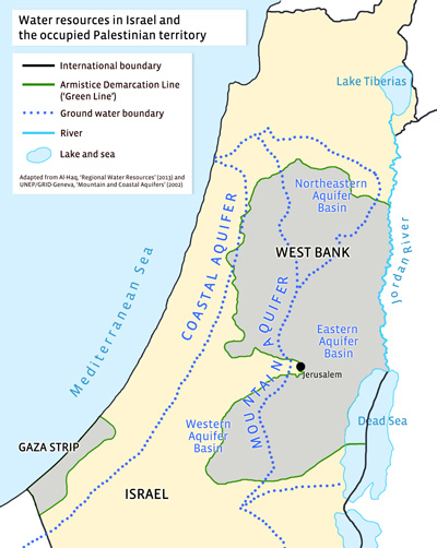 The fact that water availability and quality is one of the biggest threats and key environmental and political challenges in the area made us decide to focus on this issue in particular to explore how "race" and biopolitics are played out in the occupied territories of Palestine. Water is a basic human right and the most important tool for survival in the 'Capitalocene', it is the beginning of everything. Palestinians are deprived from clean water and have limited control over their natural resources. Israel controls over more than 80% of the water reserves in the West Bank and Palestinians have no access to the Jordan River according to the Oslo II agreements (Agha 2019). Yet, in addition to restrictions and bureaucracy, issues such as pollution, overexploitation and a high level of salt water because of the dependence on coastal aquifers, could also pose serious health implications (Agha 2019). Within the occupied territories, the availability per capita is also less than the minimum recommended by the World Health Organization (Safi 2015).